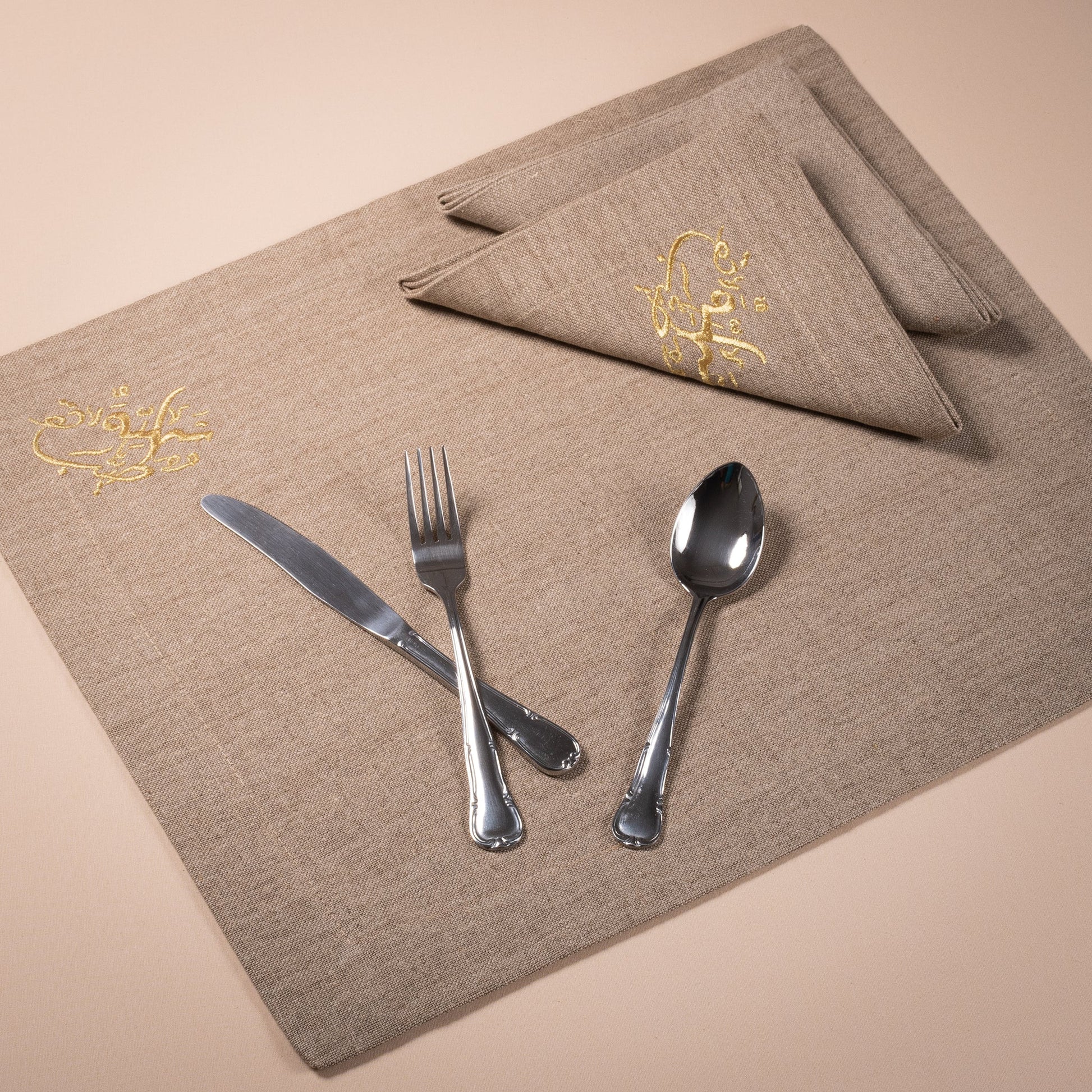 - Design Calligraphique Élégant : La nappe est embellie d'une calligraphie fine qui ajoute une note artistique à votre table.