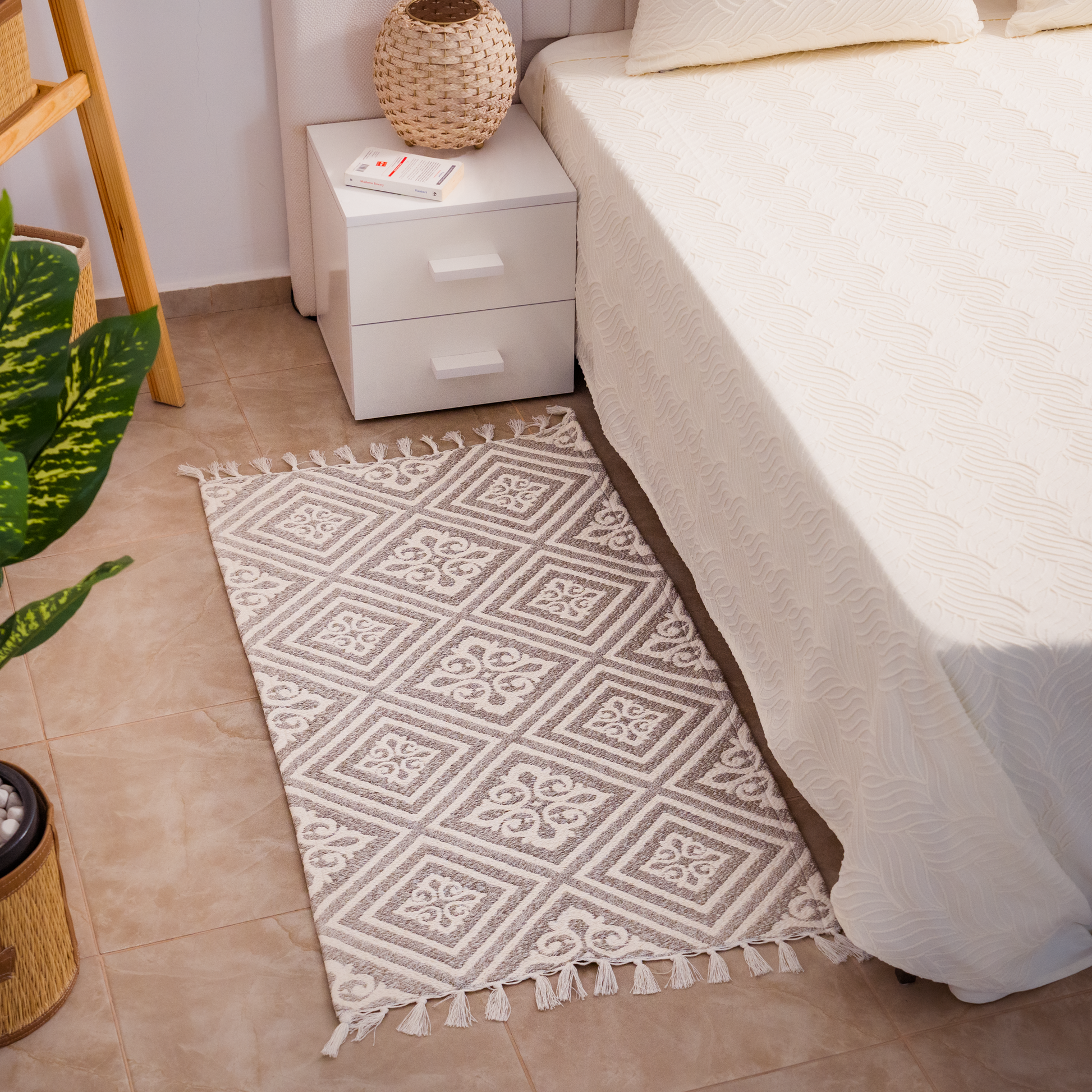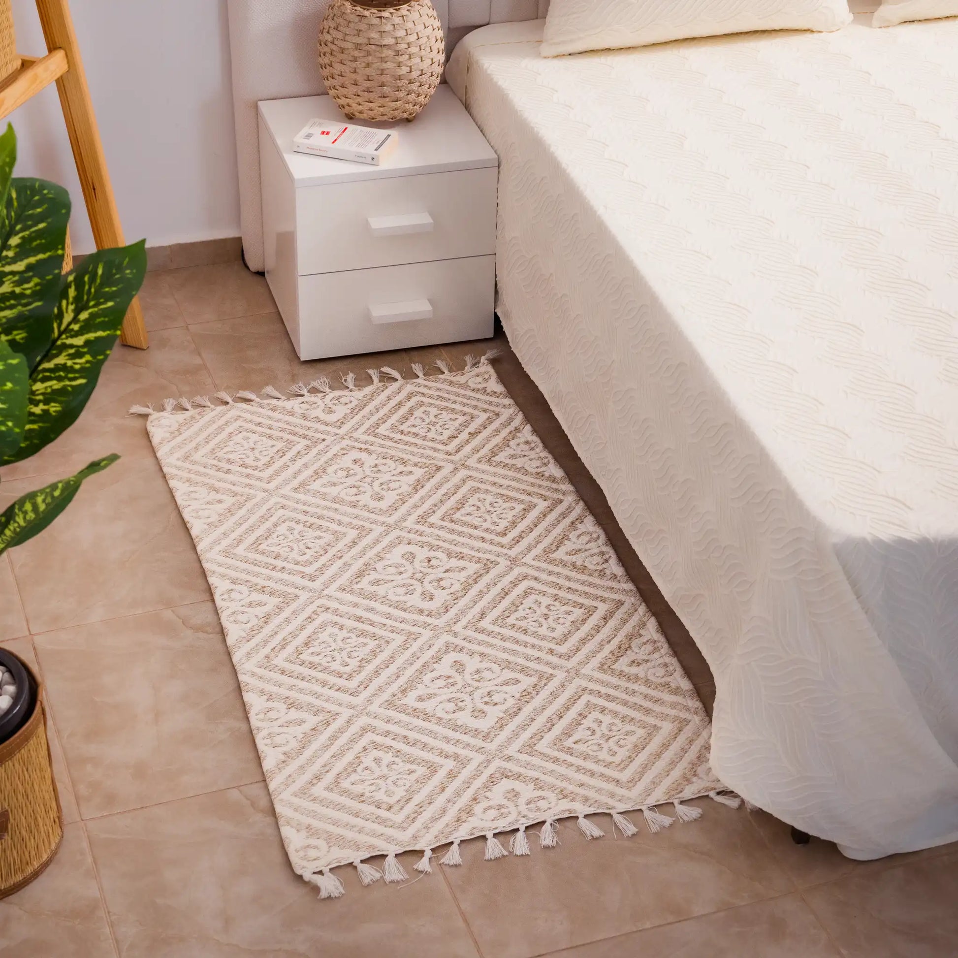 Apportez une touche d'élégance et de confort à votre chambre avec cette descente de lit en coton. Son design épuré et ses motifs uniques transforment votre espace en un véritable havre de paix. Parfaite pour compléter votre décoration, elle combine douceur et durabilité pour un usage quotidien