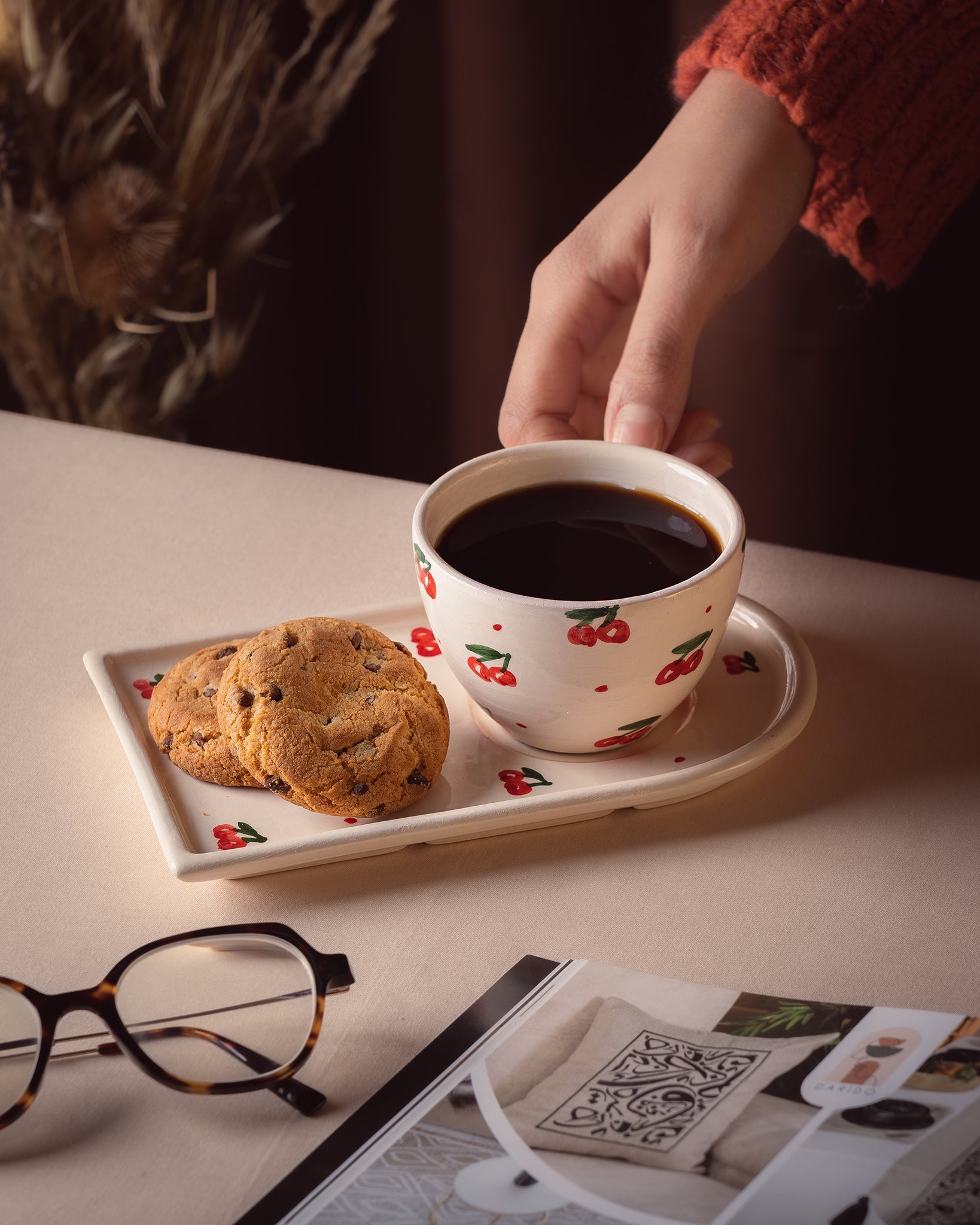 Découvrez le charme de l’artisanat avec ce Tasse et Sous Tasse Cerise ,Parfait pour vos pauses gourmandes ou vos journées de travail, ce set en céramique artisanale allie fonctionnalité et esthétique avec son charmant motif de cerises.